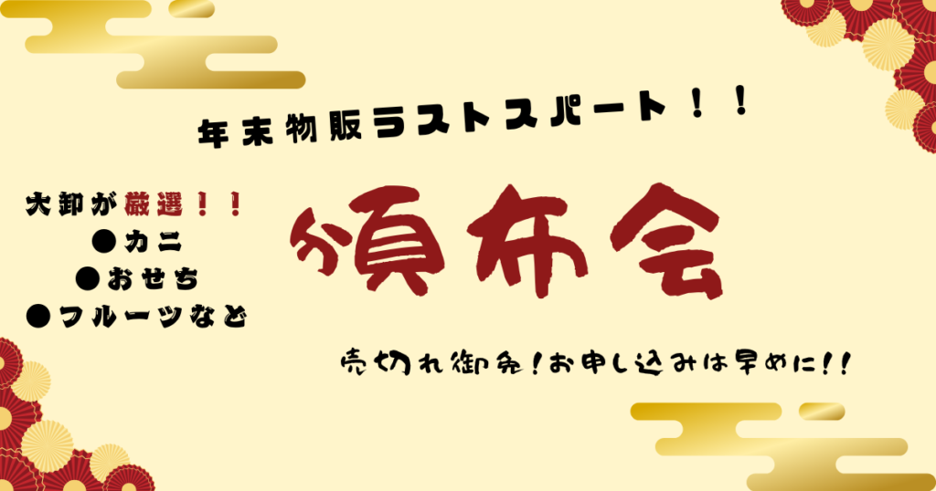 🎉年末物販ご案内(2025)—— いよいよラストスパート!🎉 11月中旬か…