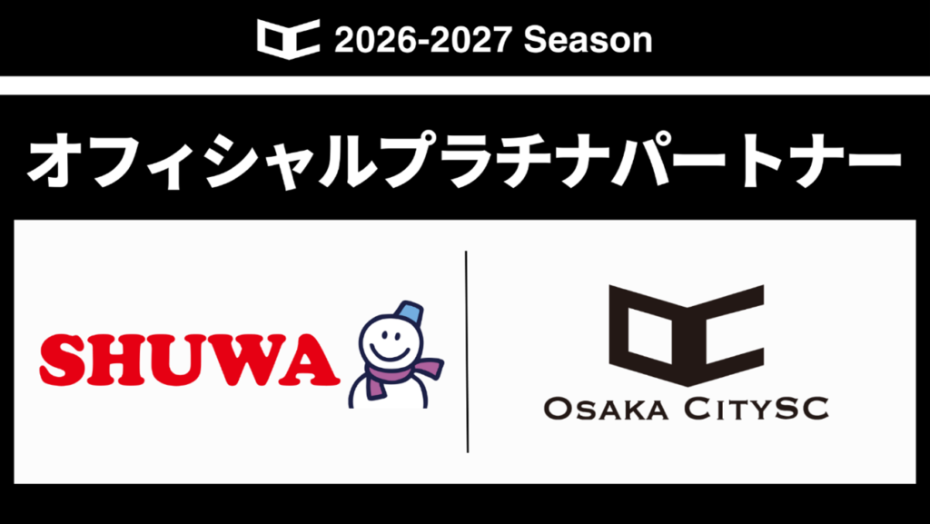 平素より、Osaka City SCの活動にご理解・ご支援賜りまして誠にありがとうございます。 この度、Osaka City SCは、シューワ株式会社様と2026-2027シーズンのオフィシャルプラチナパートナー契約を締結いたしましたのでお知らせいたします。